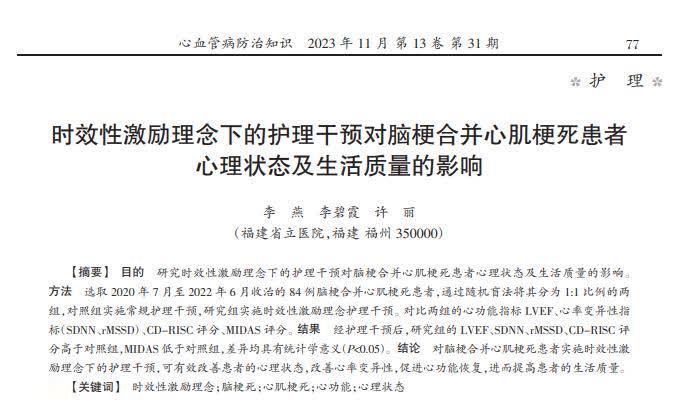 参考府上:[1] 李燕.时效性激勉理念下的督察烦嚣对脑梗吞并心肌梗死患者情愫景色及生涯质料的影响开yun体育网, 心血管病防治常识 ,2023-11-05.
