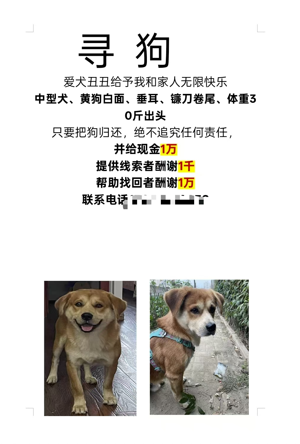 两个月来,高女士在瓦房店左近张贴寻狗缘由600余张,并在多个搪塞媒体平台合手续发布寻狗信息。寻狗启示中写明,“提供灵验思路者报酬1000元,匡助找回丑丑者报酬1万元”。但于今,关联“丑丑”的灵验思路永恒未出现。