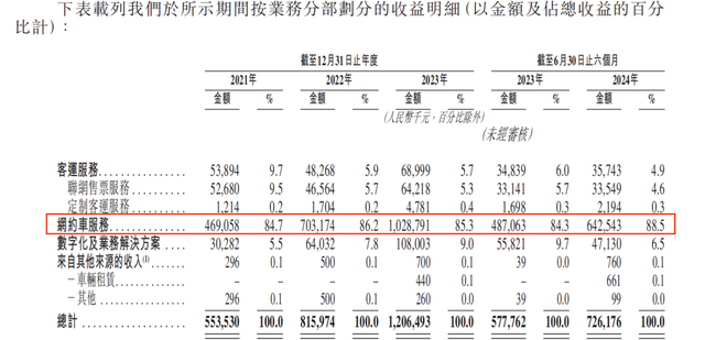 招股书炫耀,公司的网约车作事业务依赖与有限的主流团聚平台的互助。陈诉期内阿里旗下的高德恒久为公司最大的团聚平台作事提供商。各期通过高德产生的GTV(平台走动总值)划分占网约车作事业务总GTV的95.3%、92.9%、89.5%及93.4%。
